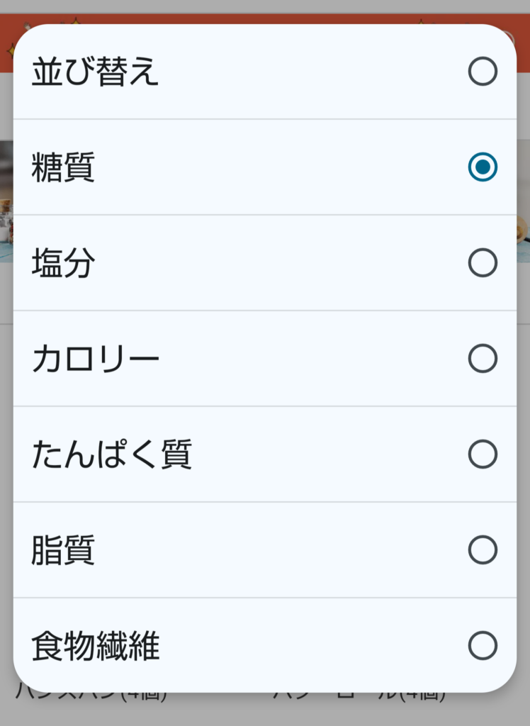 糖質が低い順に並び変える