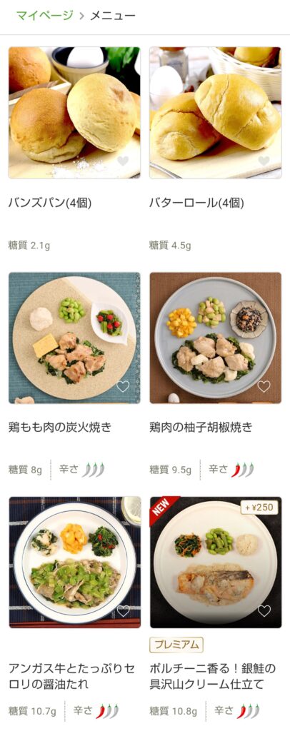 初めにパンが出てきますが、すぐに低糖質のお弁当が表示されます。