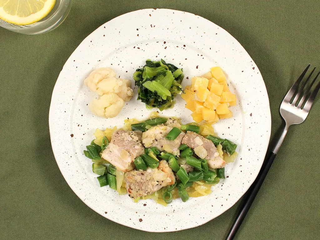 以下のようなメニューは、糖質が低い上に主菜に野菜がたっぷり入っています。